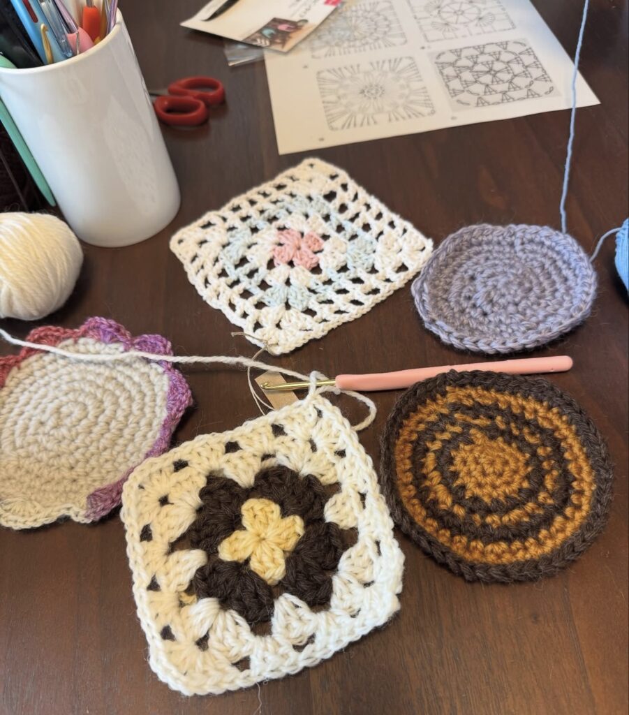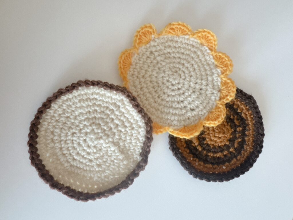 糸と針の持ち方、鎖編み、細編みを習得し編むことに少しづつ慣れていきます。