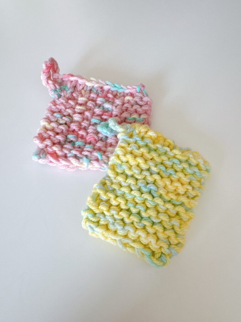 目がわかりやすいく練習しやすいちいさなものを編みます。