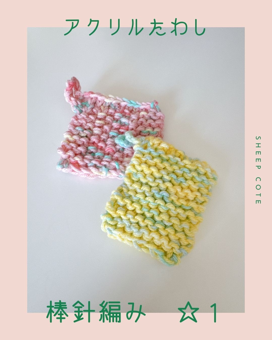 目がわかりやすいく練習しやすいちいさなものを編みます。